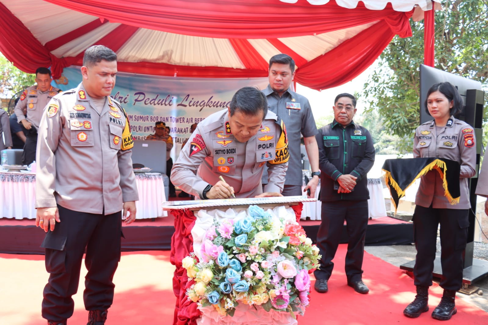 Peresmian bantuan fasilitas umum berupa sumur bor dan tower air bersih “Polisi Panrita” dari Polri untuk Masyarakat ini dilaksanakan di Dusun Bolangi Desa Timbuseng Kecamatan Pattallassang Kabupaten Gowa, Rabu (25/10/2023).