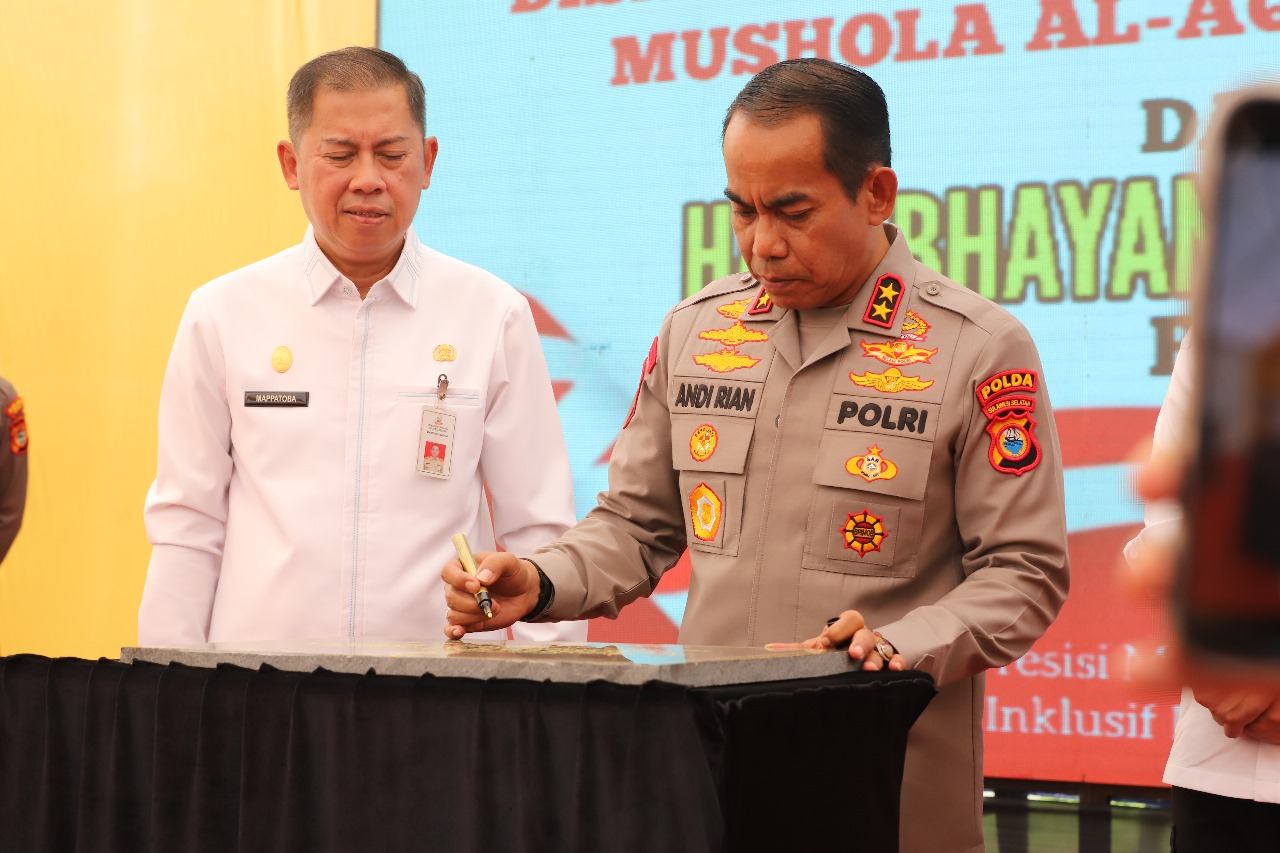 Kapolda kemudian melakukan penandatanganan prasasti Mushollah Al-Aqhsa Polsek Barombong, dan melanjutkan peninjauan kegiatan Bhayangkari, Bankes, serta bedah rumah.