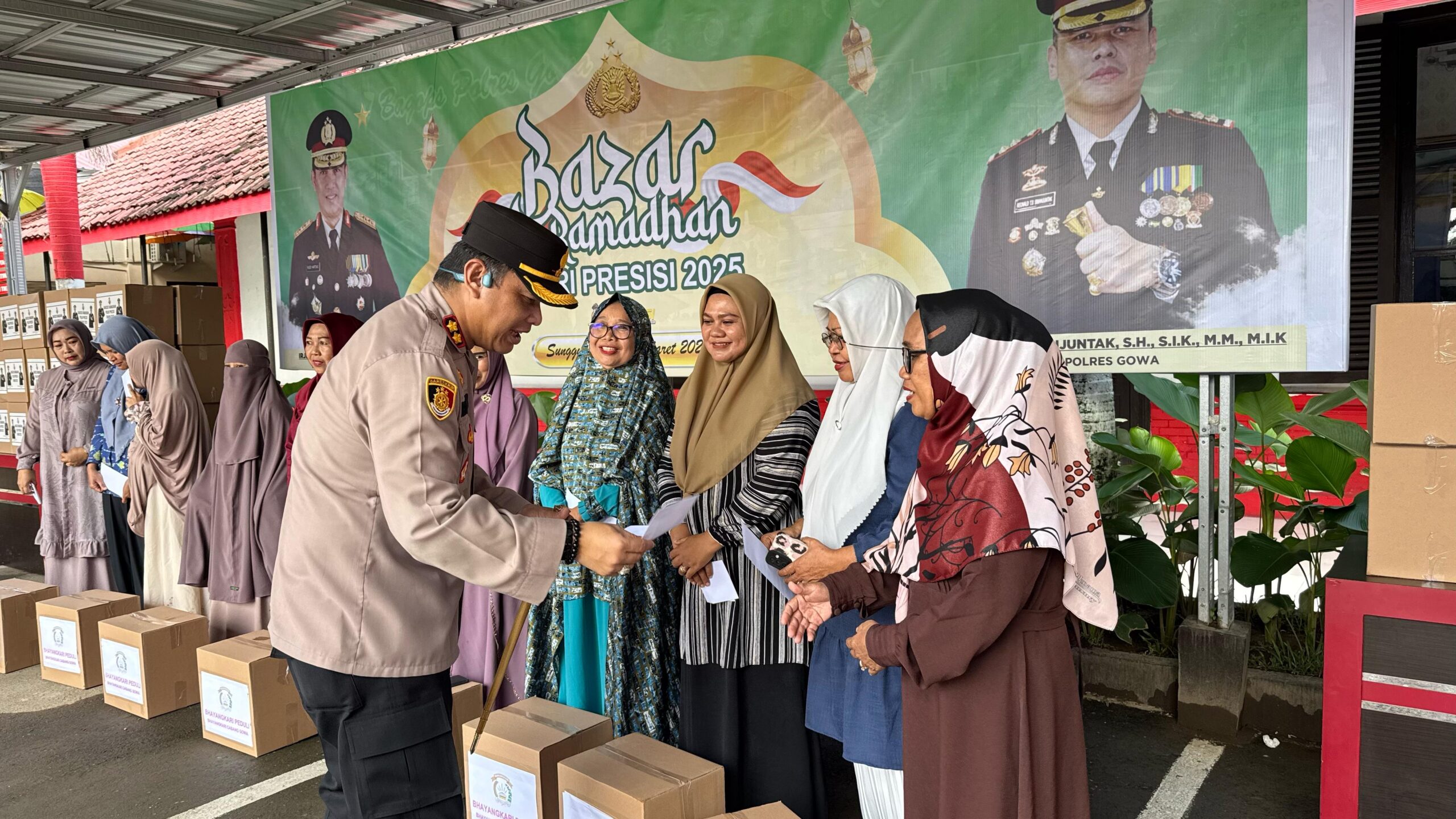 Kapolres Gowa dan Bhayangkari Bagikan Paket Lebaran kepada Warakawuri