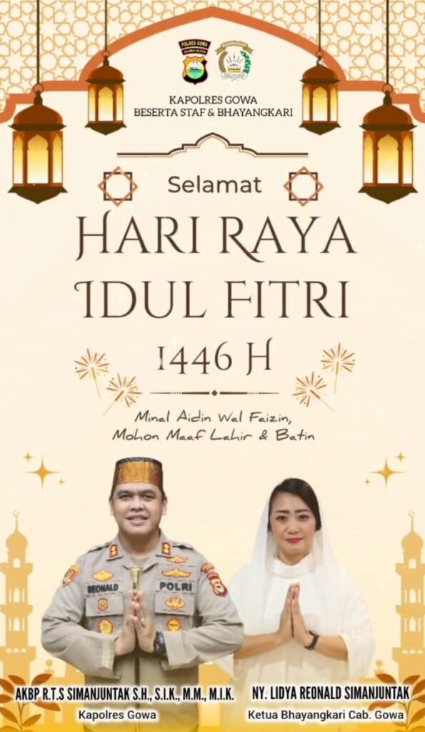 Selamat Hari Raya Idul Fitri 1446 H, mohon maaf lahir dan batin.(Humas Polres Gowa)