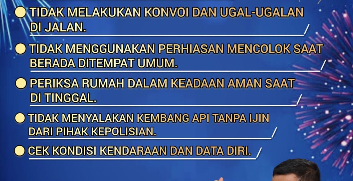 “Perayaan Tahun Baru sebaiknya dilakukan dengan tetap menjaga keamanan dan tidak mengganggu ketertiban masyarakat,” tegasnya.