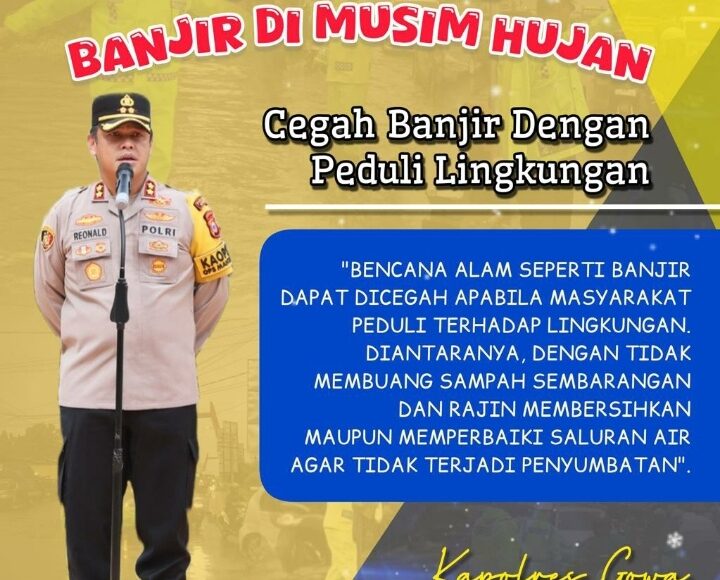 GOWA,ikagawanews.id – Kapolres Gowa, AKBP R.T.S Simanjuntak, S.H., S.I.K., M.M., M.I.K., mengimbau masyarakat untuk meningkatkan kewaspadaan menghadapi musim hujan, khususnya potensi banjir, Rabu (11/12/2024).