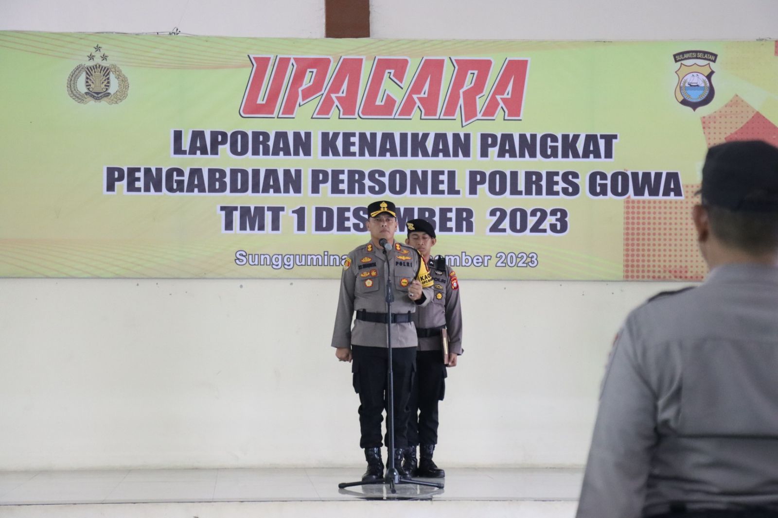 Kapolres Gowa Pimpin Upacara Korps Raport Kenaikan Pangkat Pengabdian