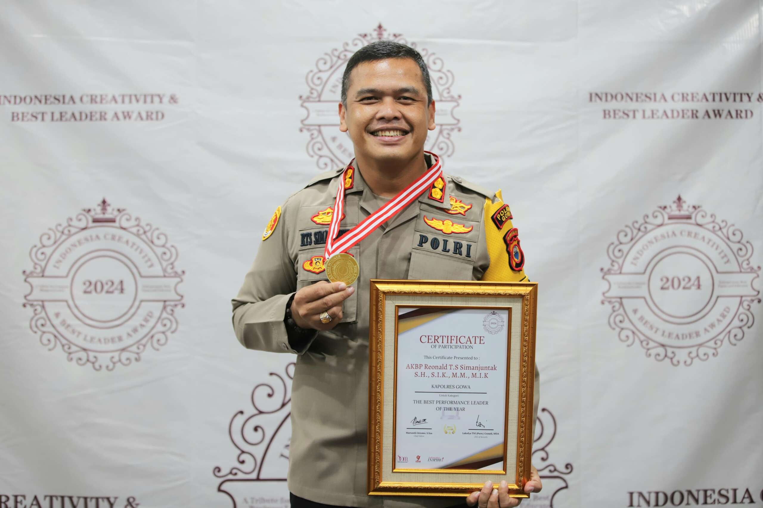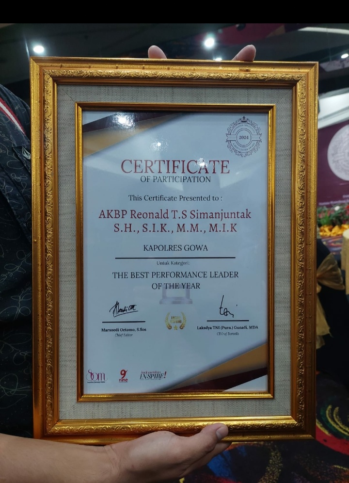 Penghargaan ini diberikan dalam acara yang berlangsung di Sunlake Hotel Resort & Convention, Jakarta Utara pada Jum’at (26/07/2024). AKBP R.T.S Simanjuntak mendapatkan penghargaan tersebut sebagai bentuk apresiasi atas kepemimpinan dan kinerjanya yang luar biasa dalam menjalankan tugas di Polres Gowa.