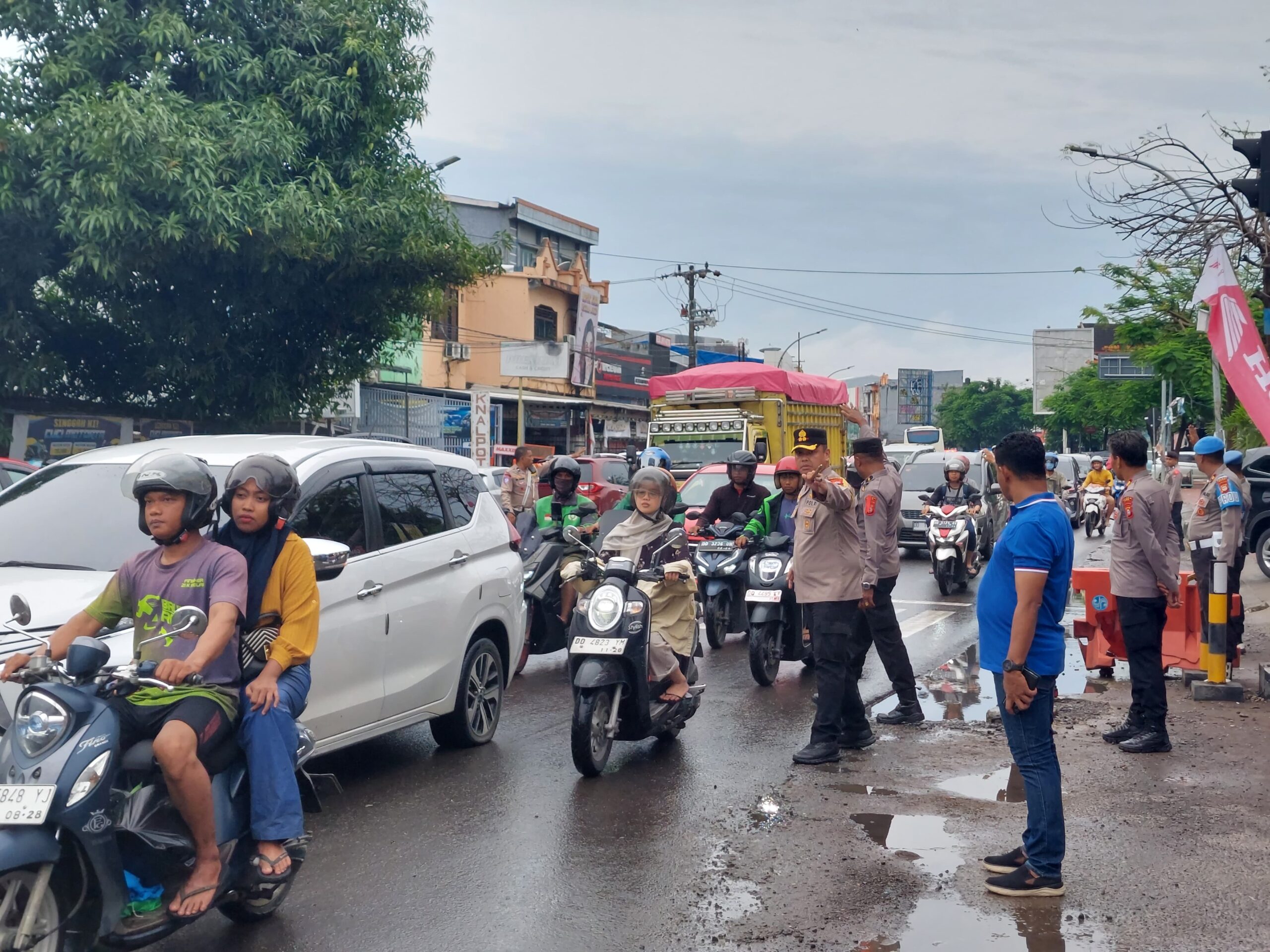 Kapolres juga turut melakukan pengaturan arus lalu lintas bersama personel Satlantas guna mengurai kepadatan.