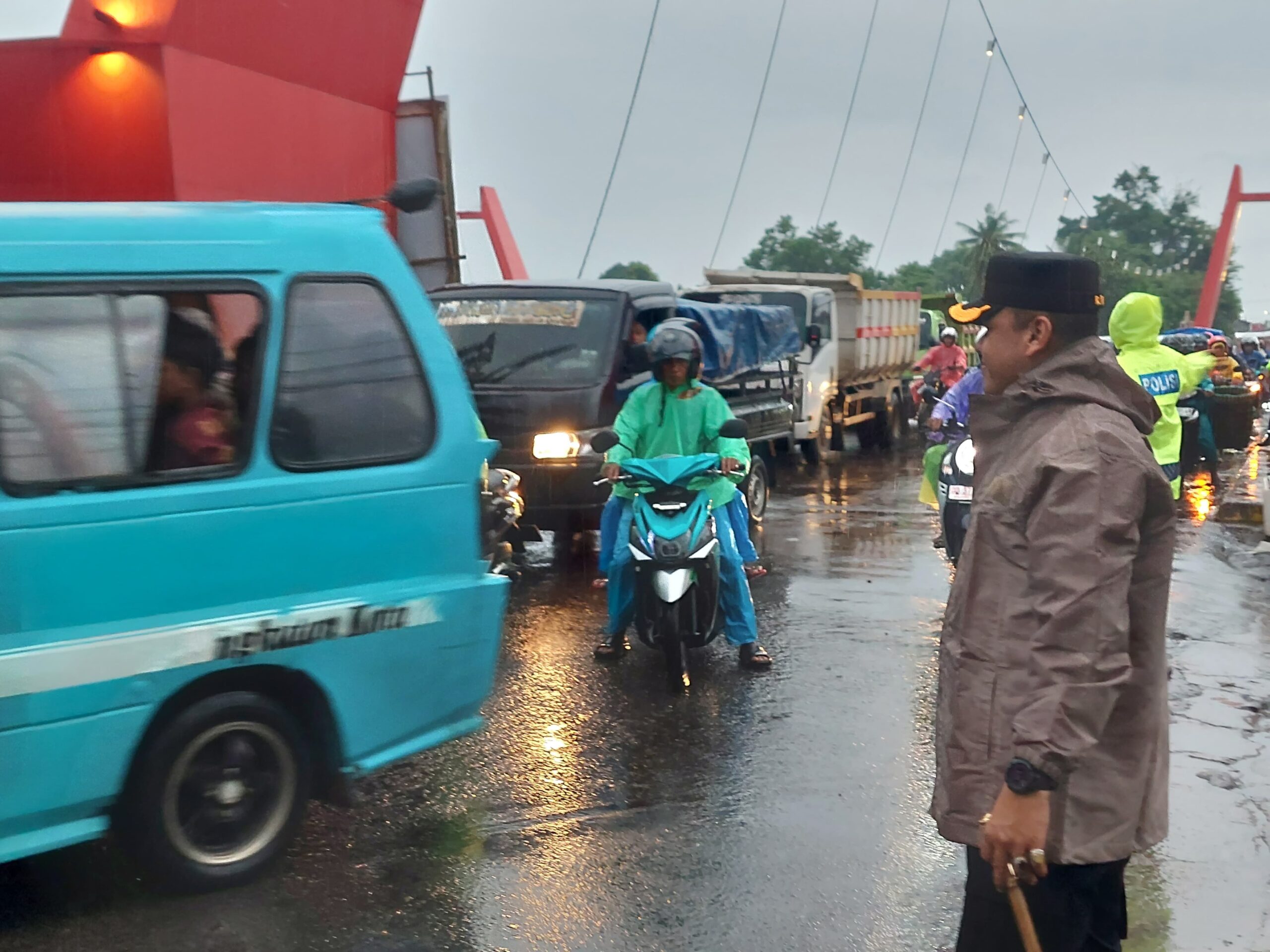 Dalam peninjauan ini, Kapolres secara aktif turun ke jalan untuk memastikan kelancaran arus lalu lintas di titik-titik padat kendaraan seperti di sekitar Jembatan Kembar.