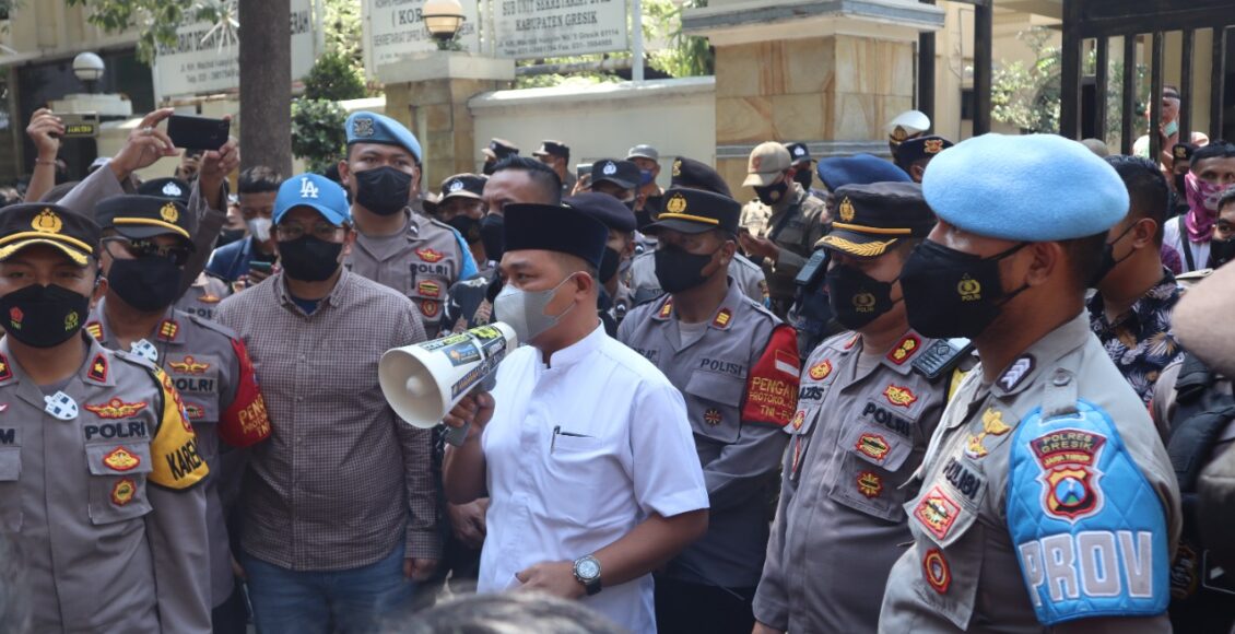 Kapolres Gresik AKBP Mochamad Nur Azis mengapresiasi adik-adik mahasiswa yang melakukan demo dengan tertib, pihaknya siap melakukan pengamanan dan membantu para mahasiswa untuk menyampaikan tuntutan.