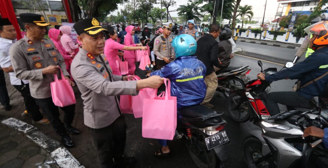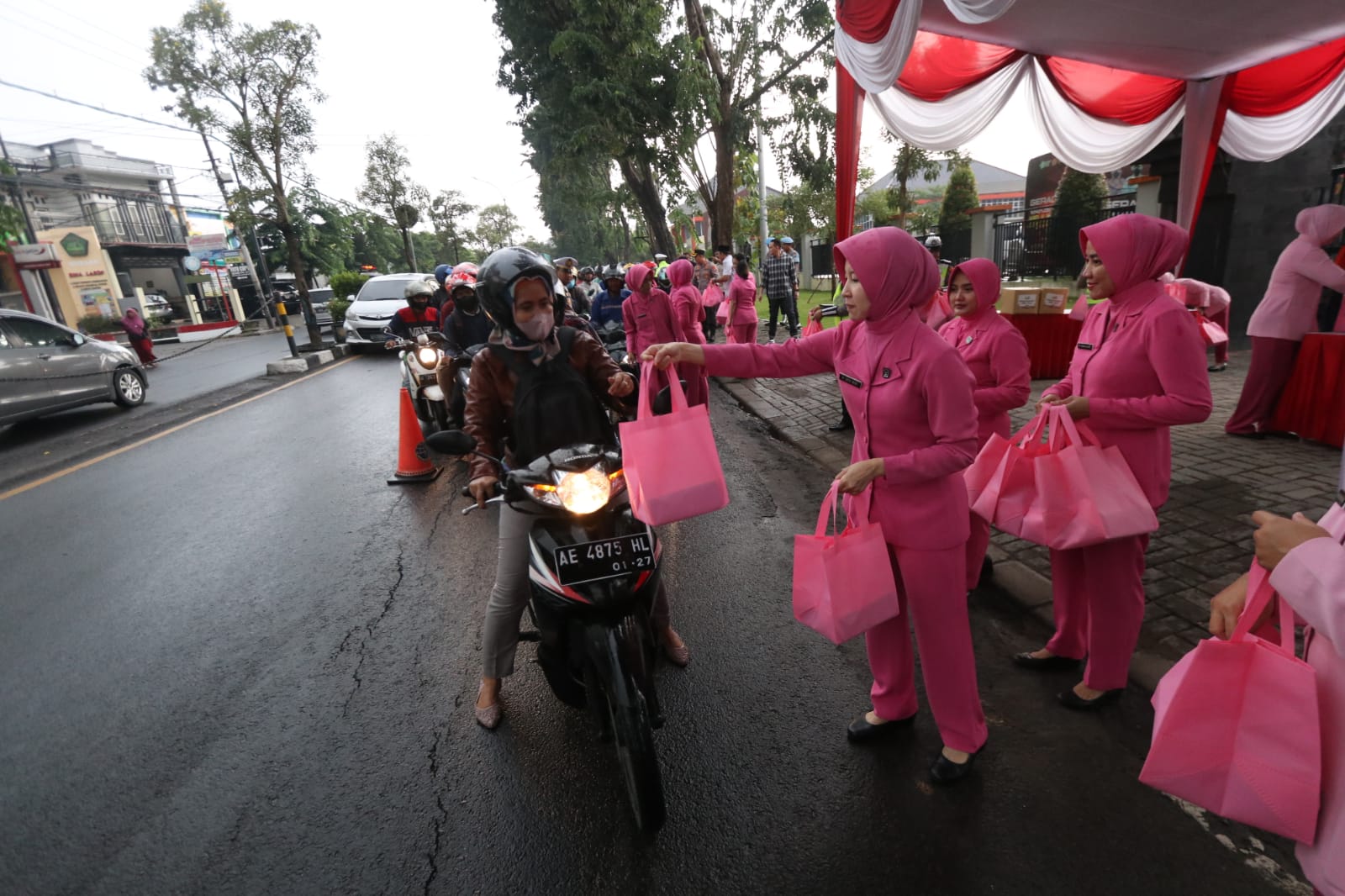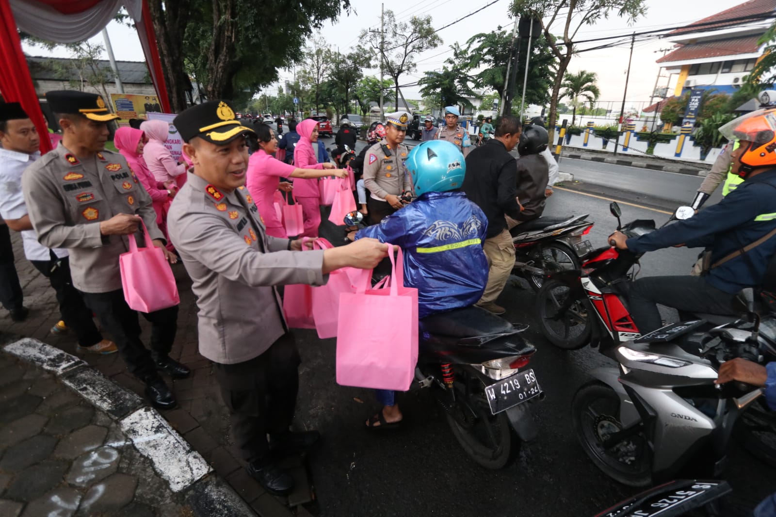 Bagi-bagi takjil yang dilakukan Kapolres Gresik bersama ketua cabang Bhayangkari Gresik beserta pengurus Bhayangkari membagikan takjil makanan khas Gresik
