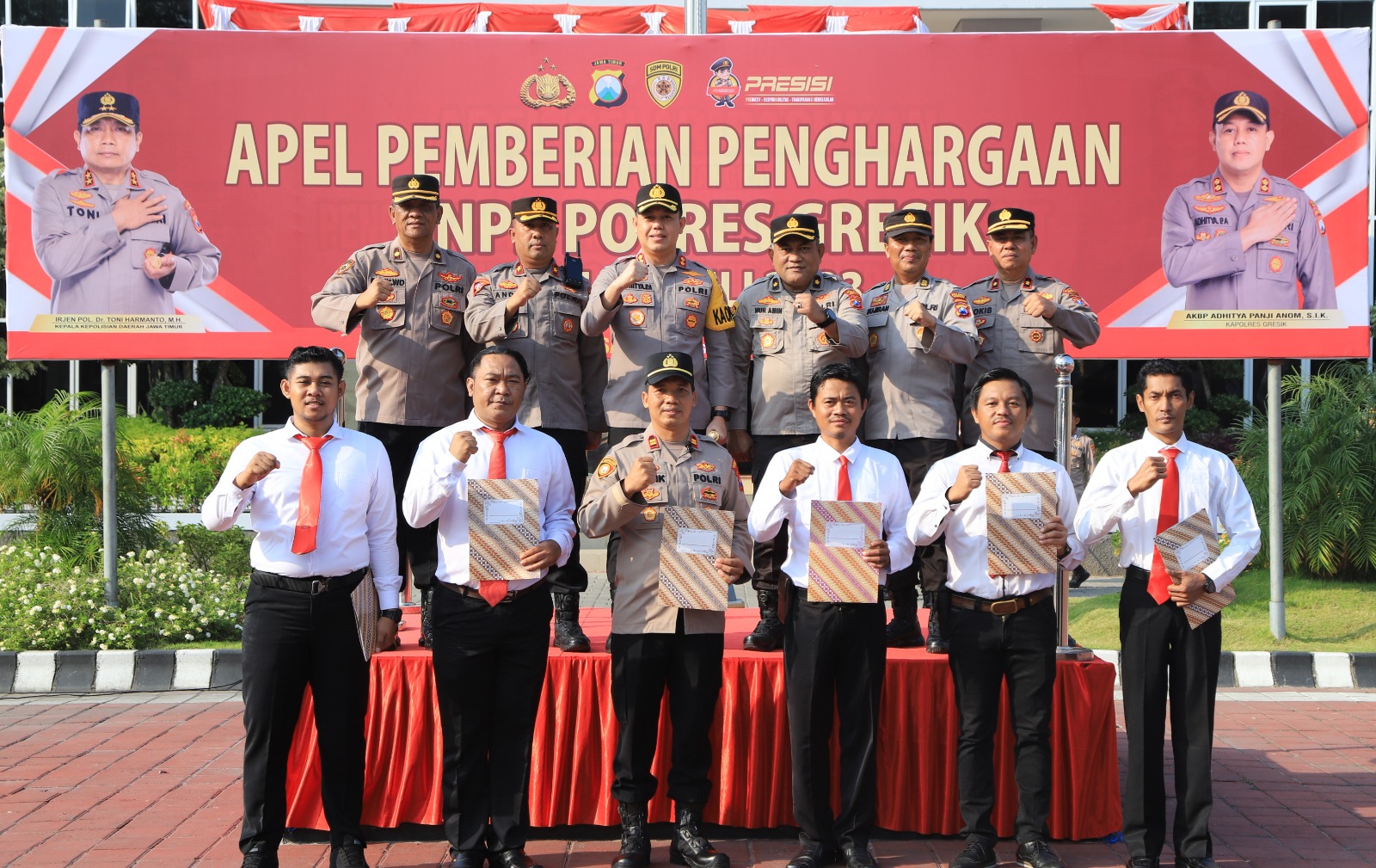 GRESIK,ikagawanews.id  – Kepala Kepolisian Resor Gresik AKBP Adhitya Panji Anom pimpin apel pemberian penghargaan kepada personel Polres Gresik yang berprestasi di halaman Mapolres.Gresik Senin (24-07-2023). Sejumlah personel Polres Gresik tampak sumringah karena kerja keras mereka diapresiasi.