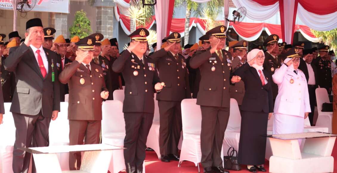 Bupati Gresik Fandi Ahmad Yani selaku Inspektur Upacara. Kegiatan yang dilaksanakan di halaman Pemkab Gresik dihadiri Kapolres Gresik AKBP Adhitya Panji Anom, Dandim 0817/Gresik Letkol Inf Achmad Saleh Rahanar dan Forkopimda juga tamu undangan.