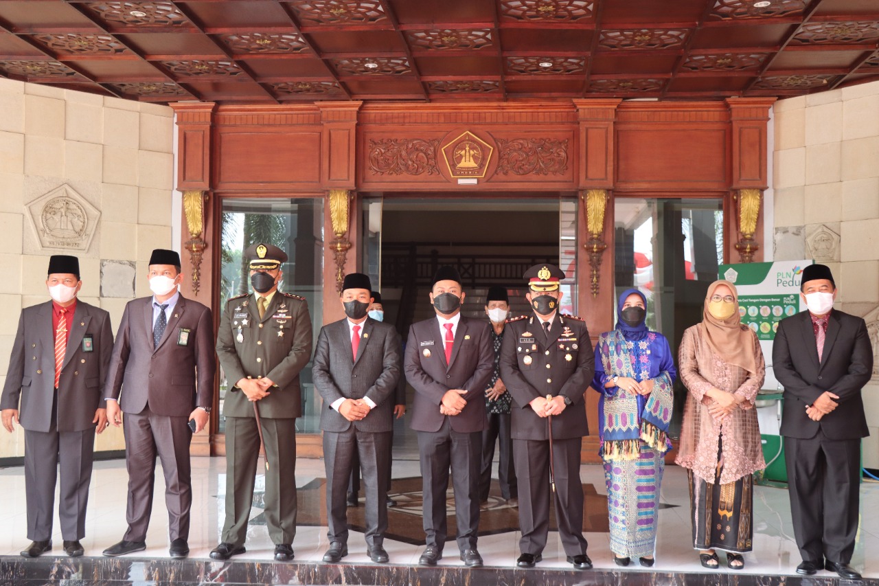 Pertama di halaman Kantor Bupati Gresik, dihadiri oleh Kapolres Gresik AKBP Mochamad Nur Azis bersama Forkopimda.