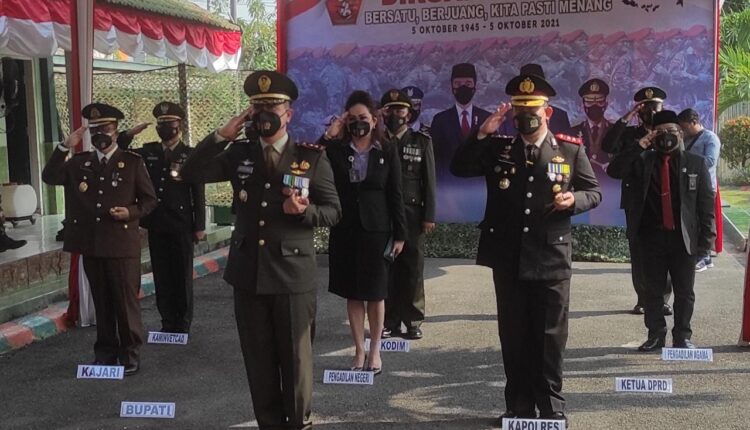 Upacara HUT TNI ke-76 dilaksanakan dengan hikmat dengan menerapkan Protokol Kesehatan secara ketat. (Hendy)