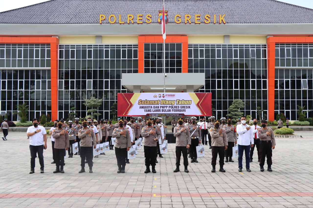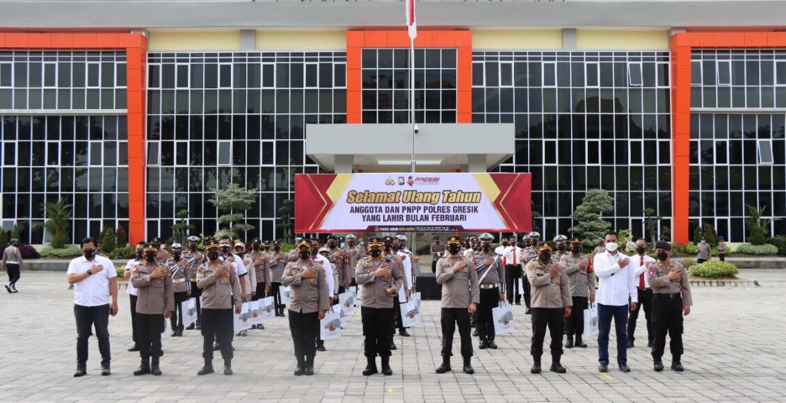 Apel pagi digelar di Mako Polres Gresik di Jalan Dr Wahidin Sudirohusodo No. 214 Gresik, Senin (07-02-2022).