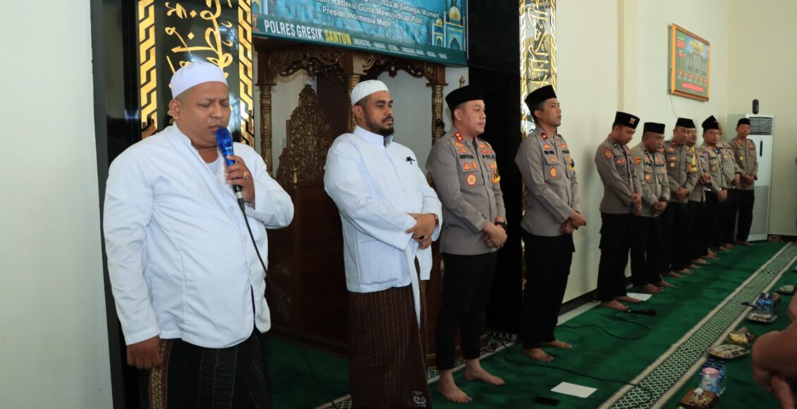 GRESIK,ikagawanews.id  – Polres Gresik peringati Tahun Baru Islam 1445 H di masjid Al Aziz, Mapolres Gresik. Kapolres Gresik, AKBP Adhitya Panji Anom mengajak seluruh anggota sebagai momentum refleksi dan evaluasi menuju Polri yang Presisi dan Indonesia Maju. Kamis(20-07-2023).