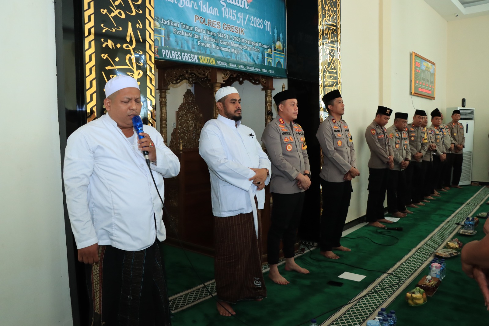 Kapolres Gresik AKBP Adhitya Panji Anom mengatakan pada tahun baru Islam 1445 Hijriah ini, diharapkan semua personel Polres Gresik diampuni dosa – dosa selama satu tahun dan diberikan syafaat oleh Allah Swt untuk menjadi lebih baik dari tahun sebelumnya.