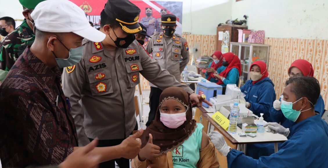 GRESIK,ikagawanews.id – Vaksinasi anak terus digelar serentak demi menciptakan imunitas anak. Kapolres Gresik AKBP Mochamad Nur Azis meninjau vaksinasi di SDN 70 Gresik yang berada di Desa Padeg, Kecamatan Cerme, Kabupaten Gresik, Jumat (25/02/2022).