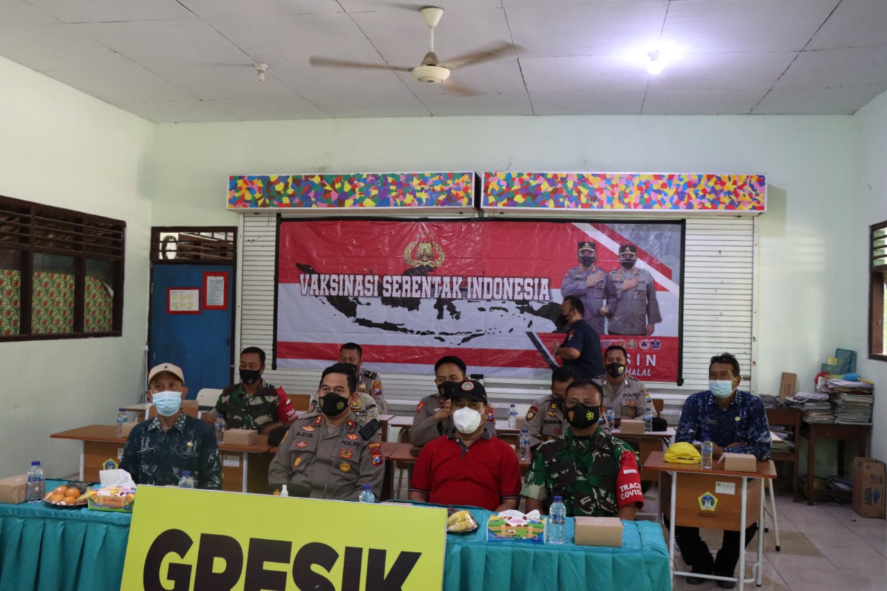 Usai mengikuti kegiatan Zoom Meeting, Kapolres Gresik berkesempatan memantau proses vaksinasi siswa-siswi SD Negeri 57. Alumnus Akpol 2002 ini sempat berdialog dengan beberapa siswa juga para guru pendamping.