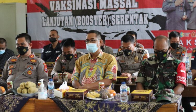 Kapolres Gresik AKBP Moch.Nur Azis berserta Rombongan di dampingi oleh Muspika Wringinanom melakukan pengecekan pelaksanaan Vaksinasi secara Serentak di ruang kelas SDN 185 Sumberwaru.