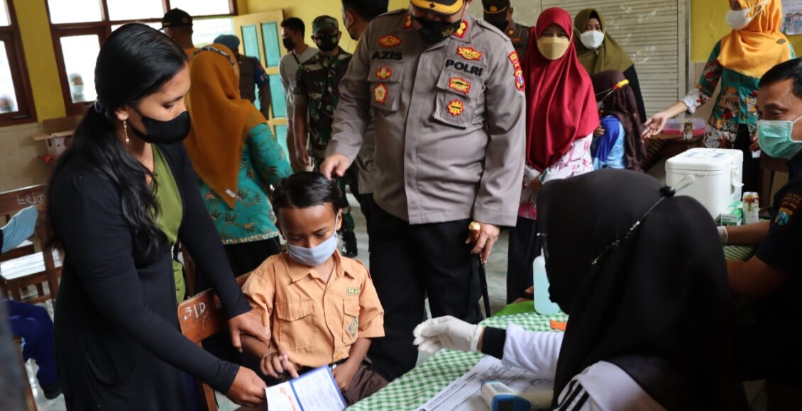 Gresik,ikagawanews.id – Vaksinasi di wilayah perbatasan tidak luput dari pantauan Kapolres Gresik AKBP Mochamad Nur Azis. Alumnus Akpol 2002 melihat langsung vaksinasi anak di SDN 185 Desa Sumberwaru Kecamatan Wringinanom, Gresik, Jumat (18-02-2022).