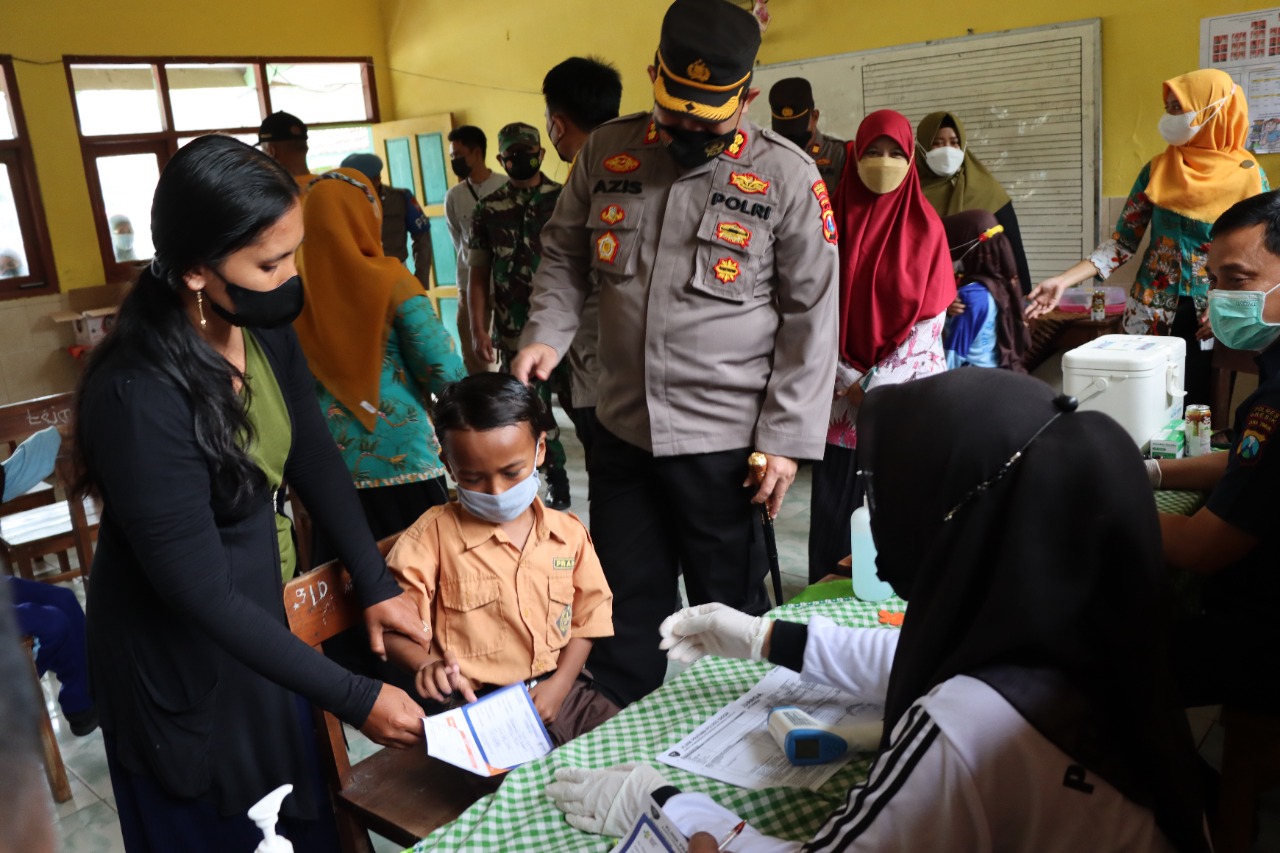 Vaksinasi kepada ratusan pelajar SD dilakukan langsung oleh tim nakes dari Urkes Polres Gresik. Jumlah sasaran pelajar yang berhasil divaksinasi sebanyak 93 Anak dari jumlah sasaran 153 anak, sisanya sudah melakukan vaksinasi secara mandiri.