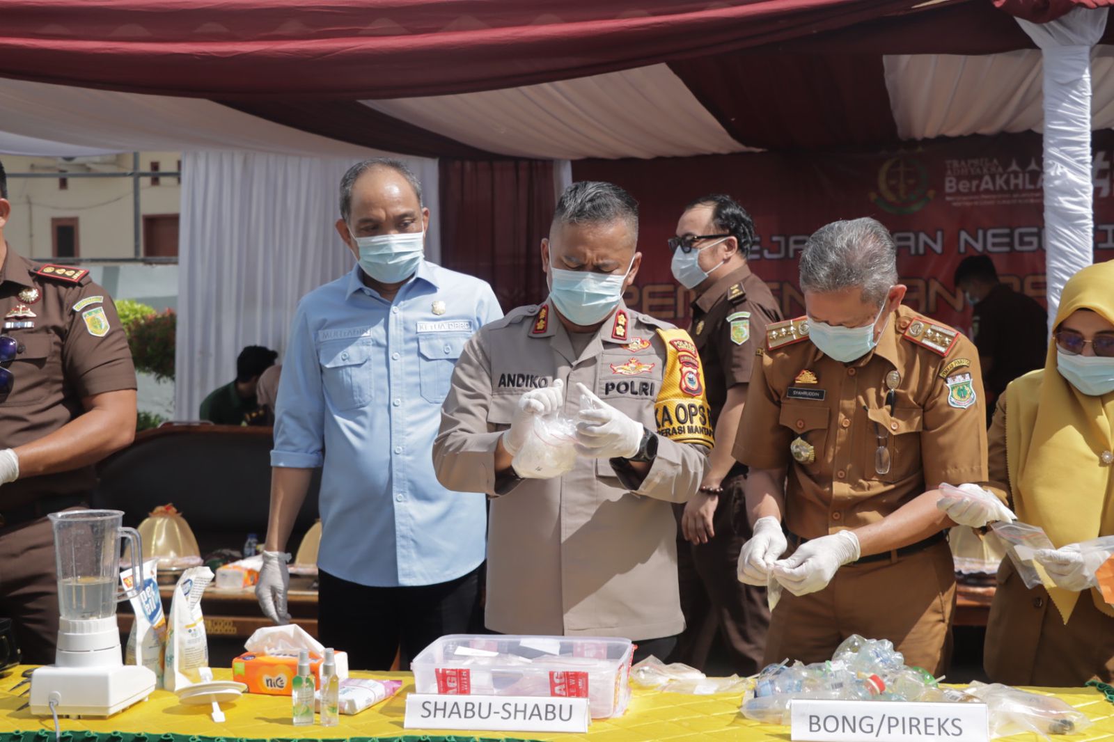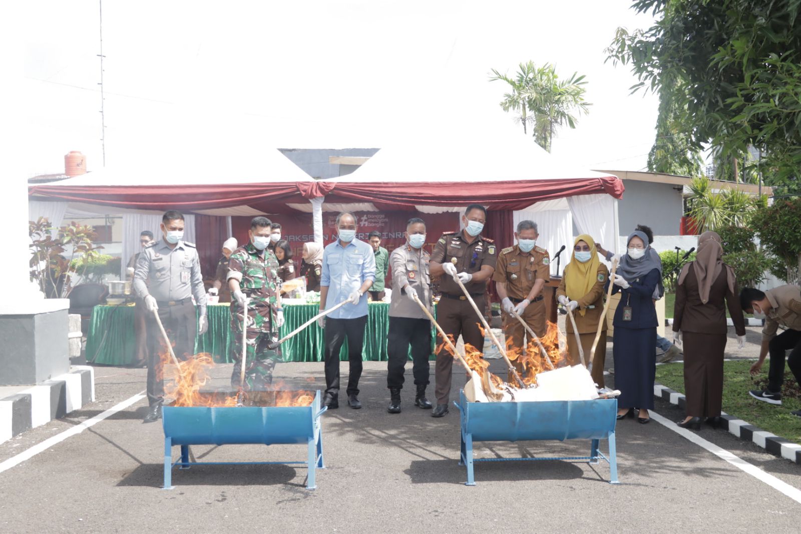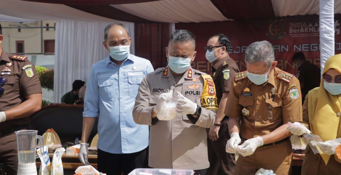 Selanjutnya keseluruhan barang bukti tersebut baik barang bukti narkotika dan non narkotika pemusnahannya dilakukan dengan cara dihancurkan dan dibakar.