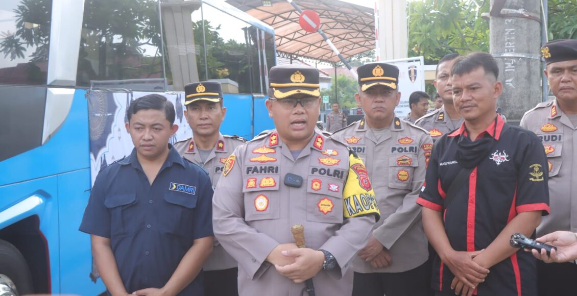 Kapolres Indramayu, AKBP Dr. M. Fahri Siregar, S.H., S.I.K., M.H., memimpin acara pemberangkatan peserta mudik gratis menjelang Idul Fitri 2024.
