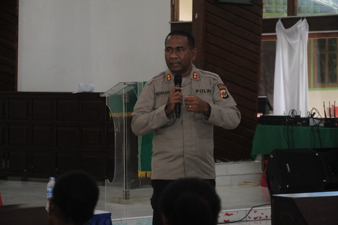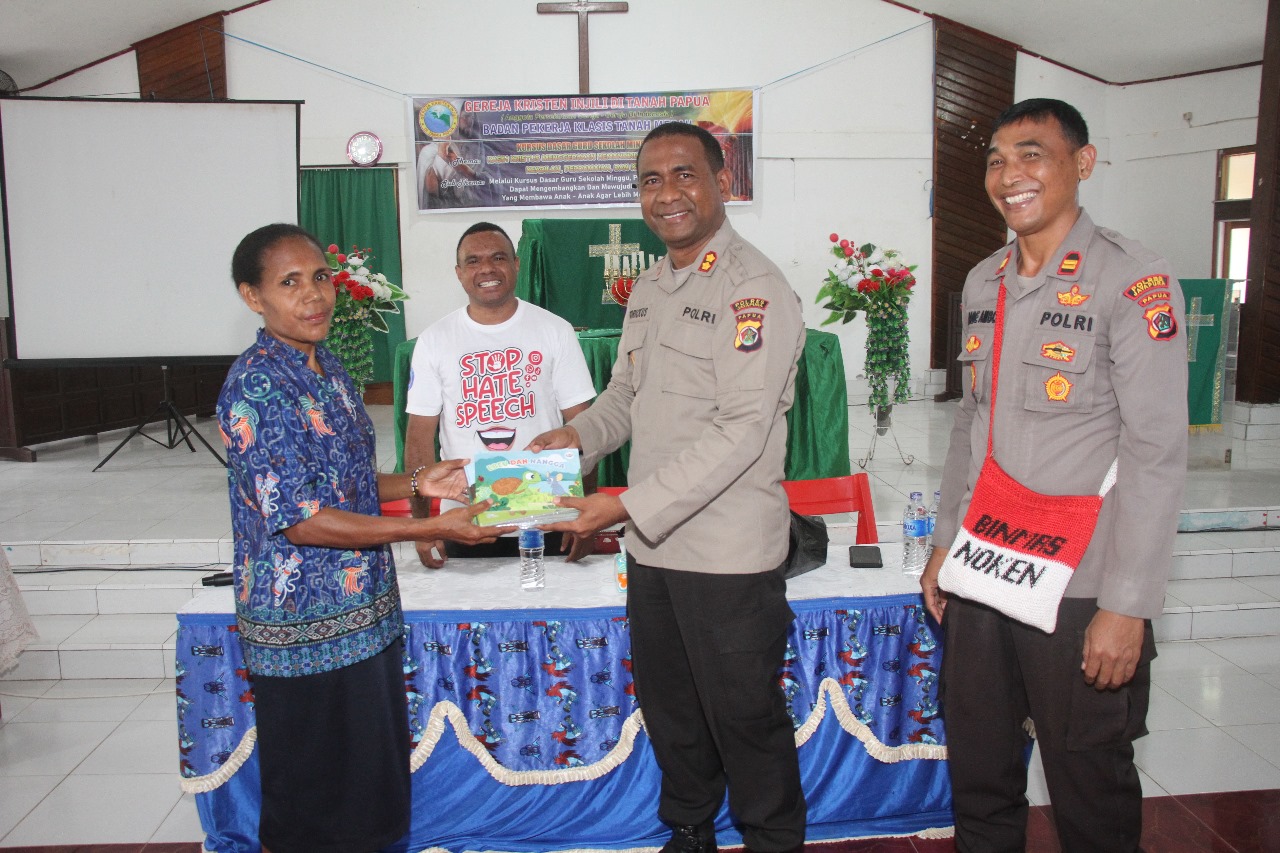 Sebagai pemateri yang disampaikan langsung Kapolres Jayapura AKBP Fredrickus W.A Maclarimboen, S.IK., MH, bersama Kasat Binmas Iptu I Made Ambo Arjana, SH., MH dan moderator Michael J Yarisetouw, yang dihadiri kurang lebih 100 jemaat atau Guru Sekolah Minggu se Distrik Depapre.