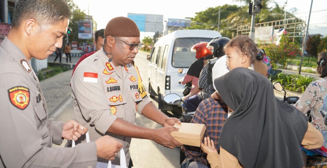 “Kami ingin berbagi kebahagiaan di bulan Ramadan ini dengan masyarakat, terutama bagi mereka yang masih dalam perjalanan saat waktu berbuka tiba. Semoga ini menjadi berkah bagi kita semua,” ujar AKBP Umar Nasatekay.