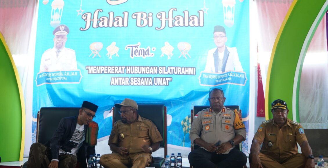 Sentani, ikagawanews.id – Kapolres Jayapura AKBP Umar Nasatekay, S.I.K., bersama Bupati Kabupaten Jayapura Dr. Yunus Wonda, S.H. M.H., menghadiri kegiatan halal bihalal dengan tema “Mempererat Hubungan Silaturahmi Antar Sesama Umat” di Masjid Jami’ Ar Ridha Kampung Benyom Jaya I Distrik Nimbokrang, Selasa (15/4).