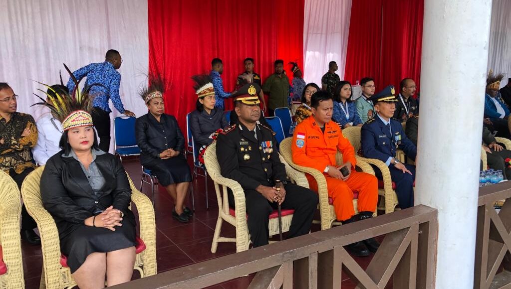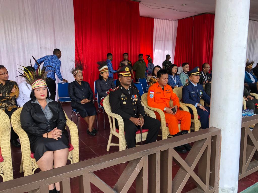 Bertindak selaku inspektur upacara Pj. Bupati Jayapura Triwarno Purnomo, S.STP., M.Si. yang turut dihadiri oleh Sekda Kabupaten Jayapura Dr. Hana Salomina Hiyolabi, S.Pd., M.KP., Ketua DPRD Kab. Jayapura Klemens Hamo, S.IP., M.H., Wadanrindam XVII/Cenderawasih Kolonel Inf Okki Andriansyah, Dansecaba Rindam XVII/Cenderawasih Letkol Inf Ranoviandy Choirul, Kasikalmat Lanud Silas Papare Letkol Kal Agung, Danyonif RK 751/VJS Letkol Inf Untung Iswahyudi, S.Sos., M.KP., Para Pejabat Pemerintahan Kabupaten Jayapura, TNI-Polri dan ASN Kabupaten Jayapura.