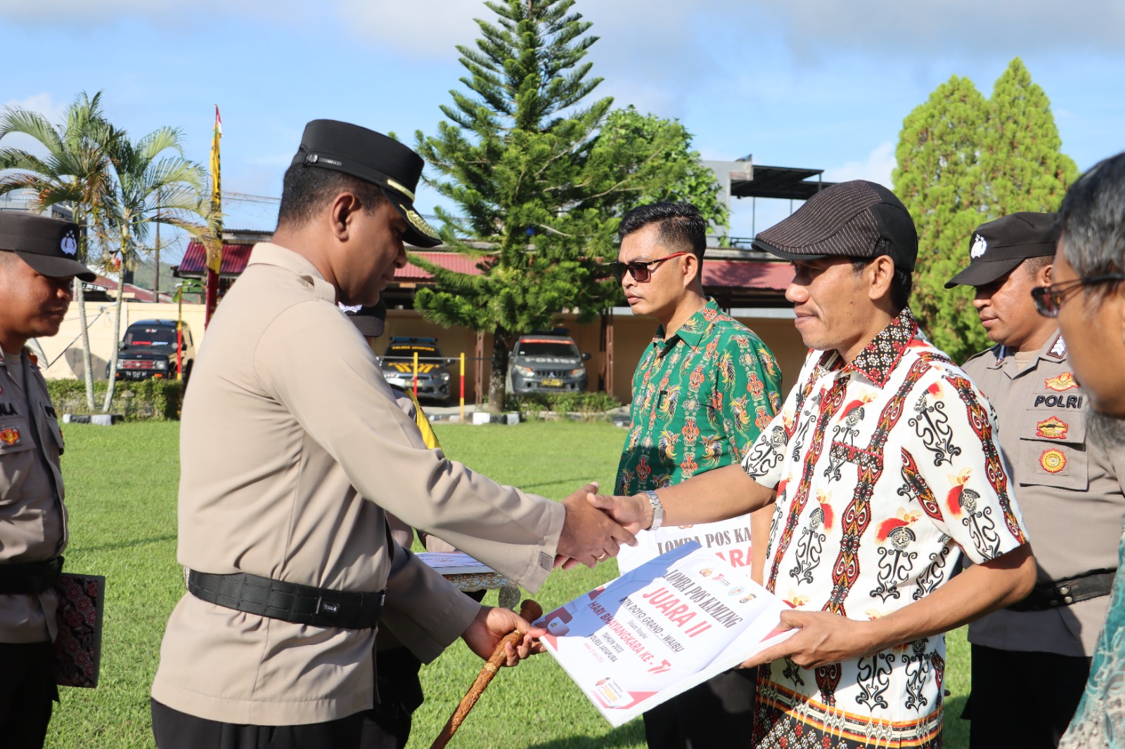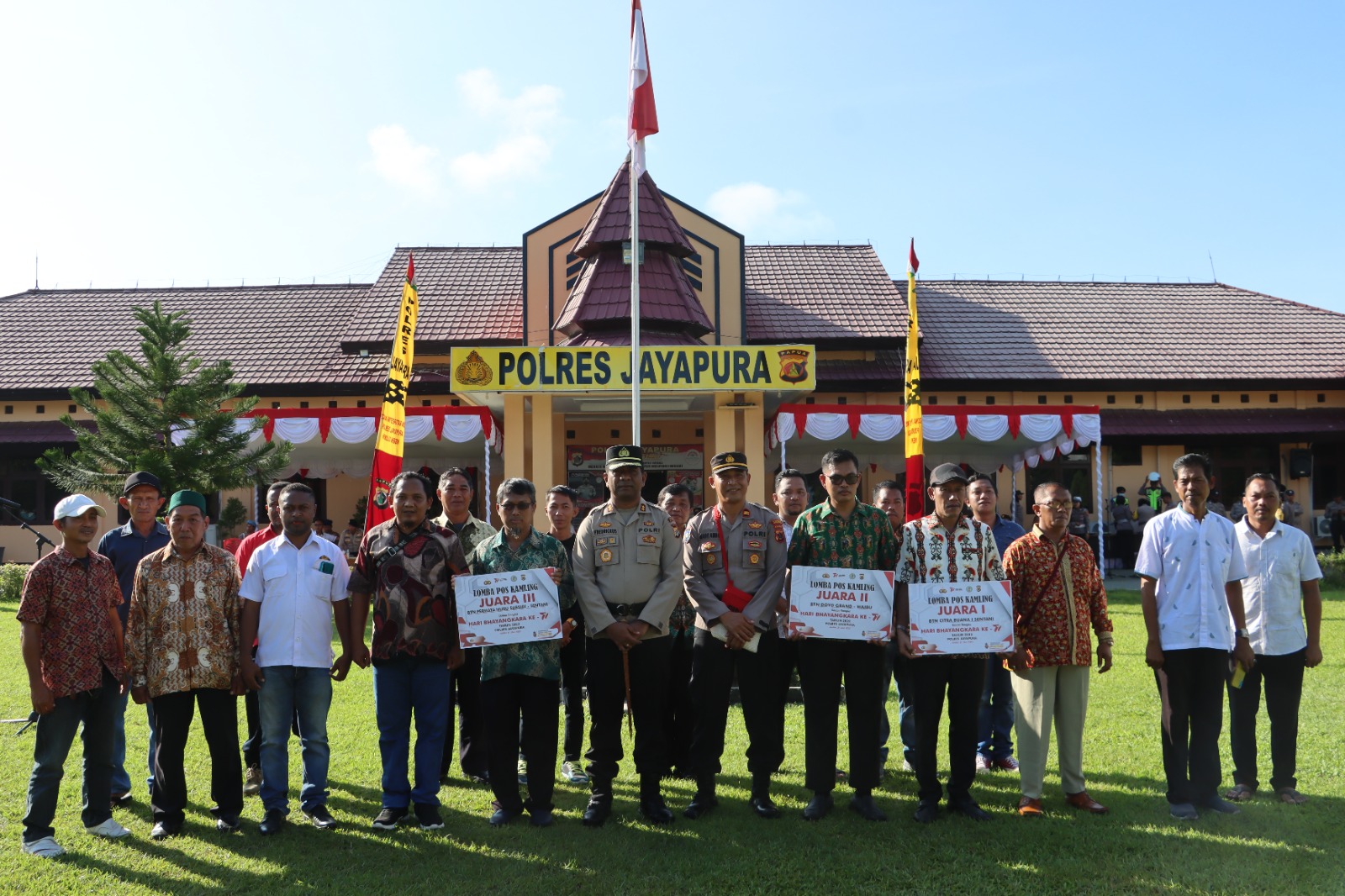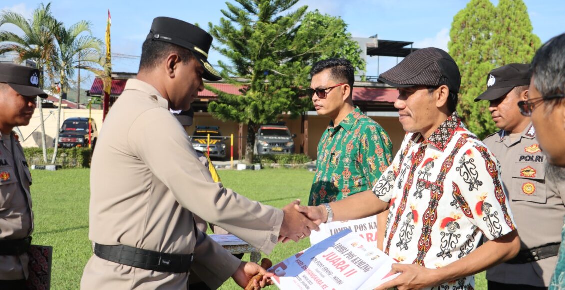 Di sela – sela pelaksanaan apel Kapolres Jayapura menyerahkan langsung penghargaan dan hadiah pada pemenang lomba pos kamling, Juara 1 dimenangkan BTN Citra Buana 1, Juara 2 BTN Grand Doyo Baru serta juara 3 BTN Permata Hijau Sentani.