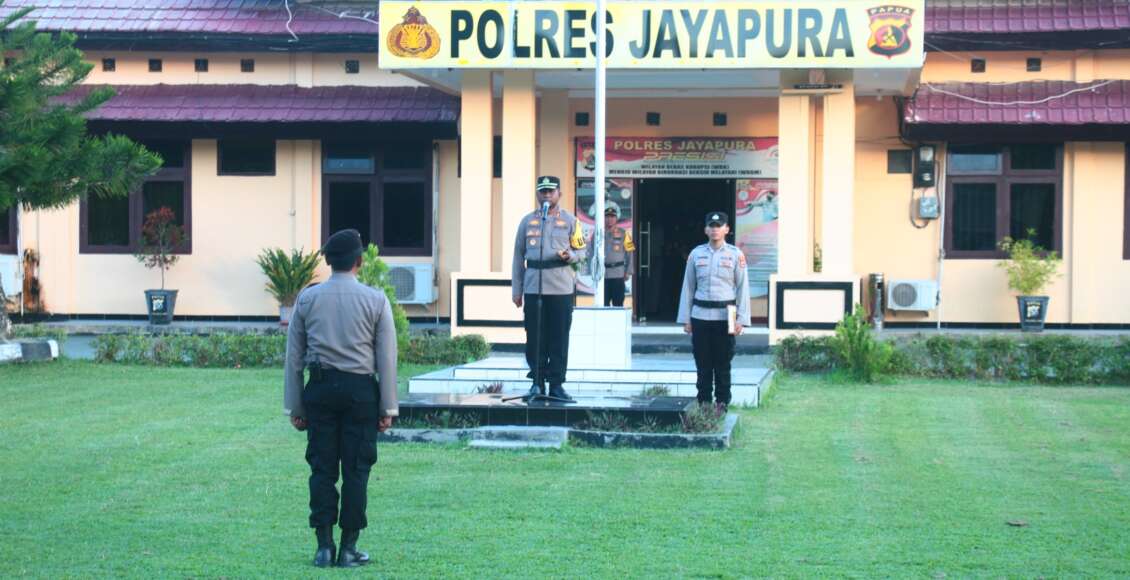 Kapolres Jayapura Pimpin Upacara Kenaikan Pangkat Anggotanya