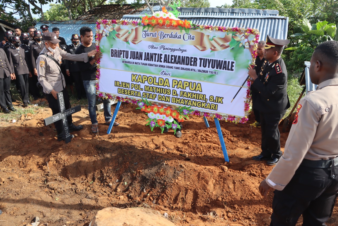 Turut hadir dalam kegiatan tersebut para PJU Polres Jayapura, Brimob BKO Polda Maluku, personil Koramil 1701-Sentani, anggota Polres Jayapura, Bhayangkari Cabang Jayapura, serta seluruh anggota keluarga mendiang.