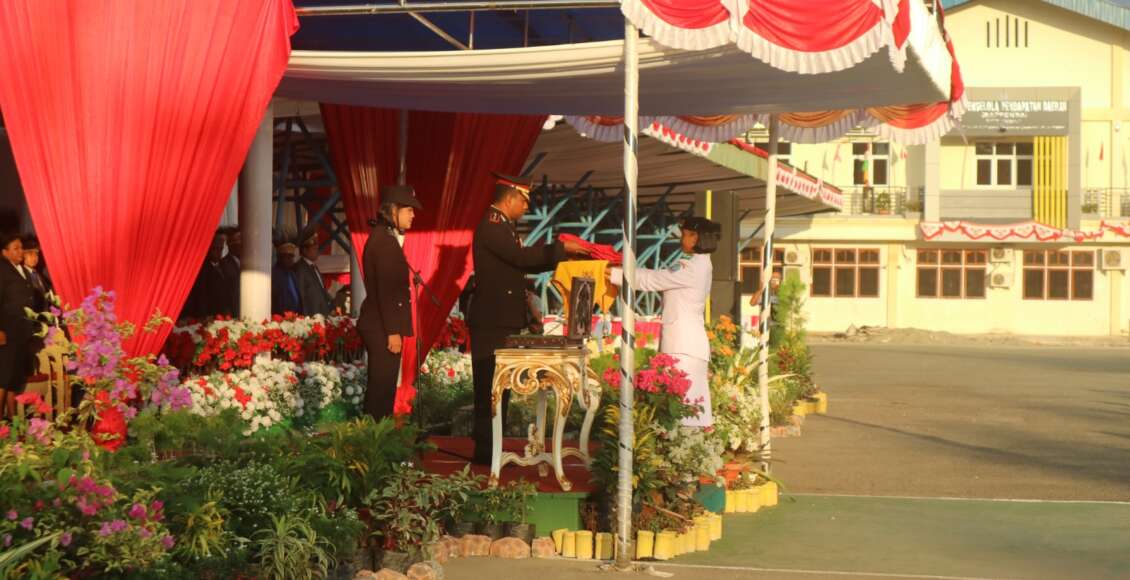 Sebelumnya, dalam upacara pengibaran bendera detik – detik proklamasi kemerdekaan RI pagi tadi, Bupati Jayapura Triwarno Purnomo, S.STP., M.Si bertindak sebagai inspektur upacara bendera, yang digelar secara khidmad dengan pasukan pengibar bendera pusaka (Paskibraka) putra – putri Kab. Jayapura.