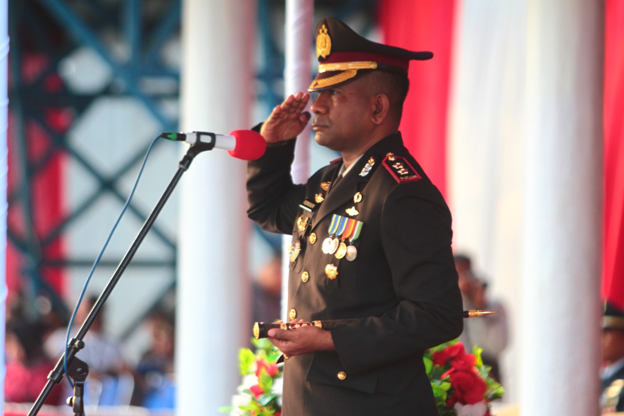 Sentani ,ikagawanews.id – Kapolres Jayapura AKBP Fredrickus W.A Maclarimboen, S.IK., MH bertindak selaku Inspektur Upacara pada Upacara Penurunan Bendera Merah Putih di Hari Ulang Tahun Kemerdekaan Republik Indonesia pada Rabu (17/08) Sore, yang dilaksanakan di Halaman Kantor Bupati Kabupaten Jayapura.