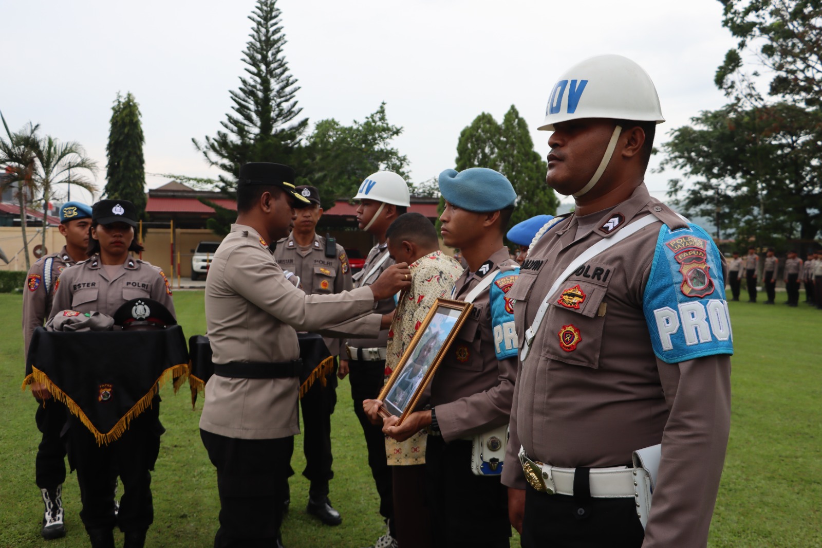 Kapolres Jayapura AKBP Fredrickus W.A Maclarimboen, S.IK., MH melepas langsung baju dinas yang dikenakan Aipda RT dan pencoretan foto Brigpol OW yang tidak hadir saat upacara pemberhentian dengan tidak hormat (PTDH), dihadapan para pejabat utama, ASN serta seluruh personil Polres Jayapura.