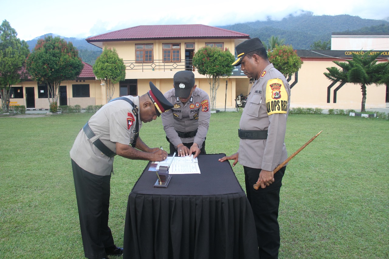 Kapolres Jayapura Pimpin Upacara PTDH 3 Anggota Dan Melantik Kapolsek Kaureh