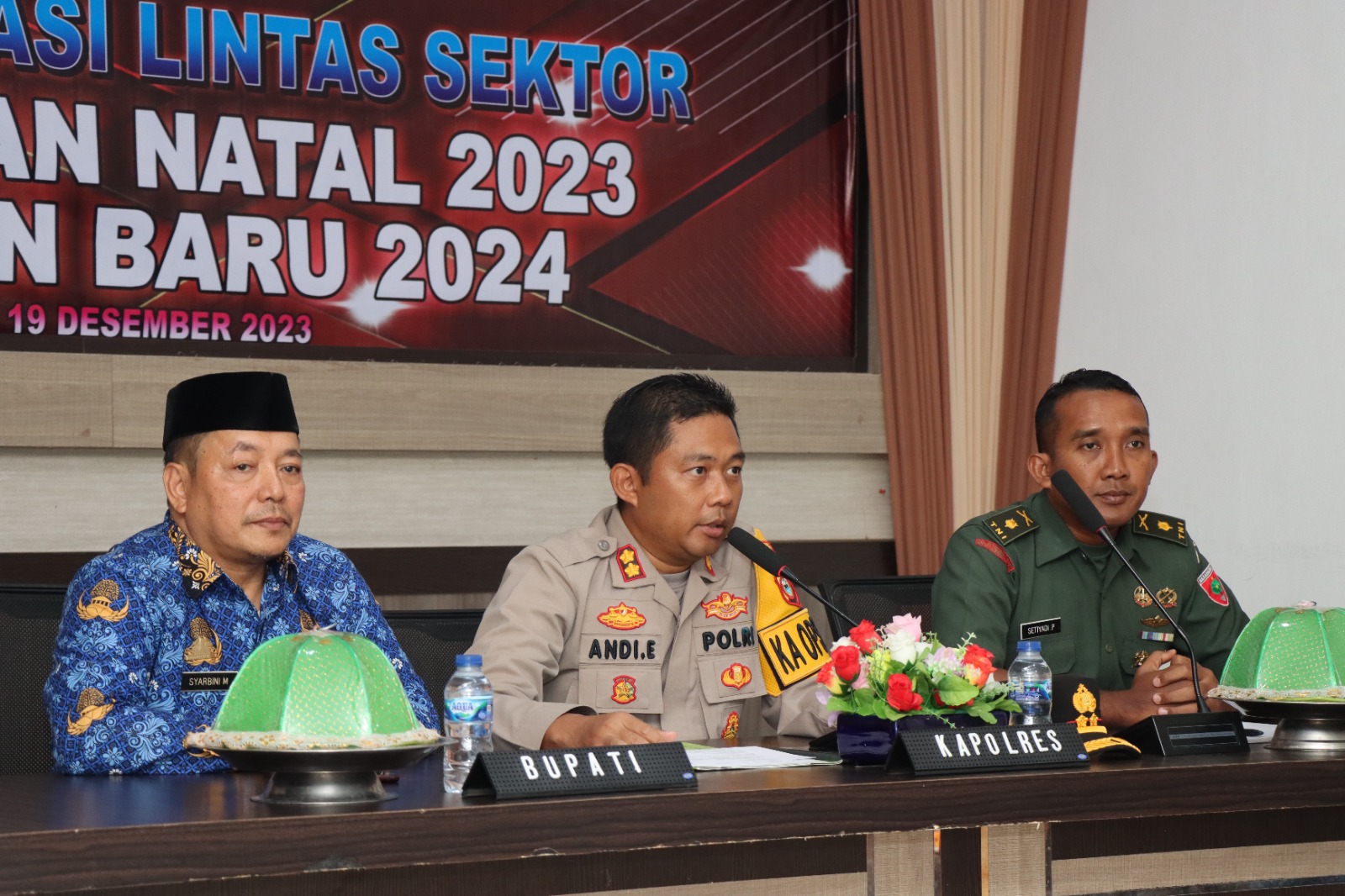 Kapolres Jeneponto AKBP Andi Erma Suryono, S.H., S.I.K., dalam sambutannya menyampaikan tentang rencana pengamanan Natal 2023 dan Tahun Baru 2024, Kapolres berharap agar semua pihak berperan aktif dalam menciptakan situasi keamanan dan ketertiban masyarakat dan tetap waspada terhadap segala ancaman yang akan mengganggu keamanan dan ketertiban masyarakat.