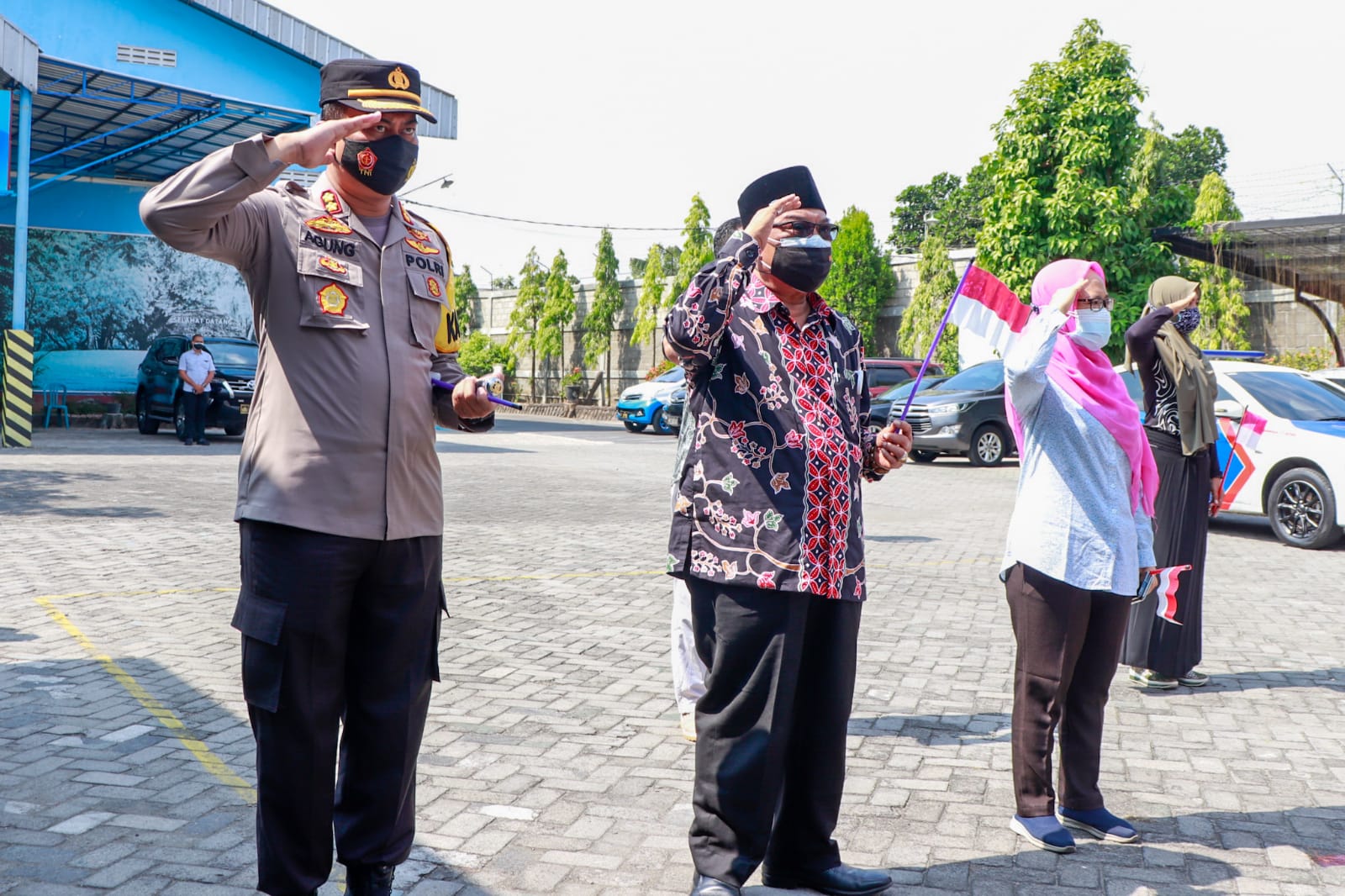 Kapolres Jombang bersama Buruh Kibarkan Bendera Merah Putih Sebagai Simbol Lawan Corona