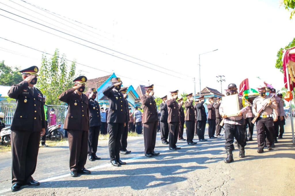 Jombang,IKAGAWANEWS.ID – Kepala Kepolisian Resort(Kapolres)Jombang AKBP AGUNG SETYO NUGROHO ,S.I.K., Pimpin langsung kegiatan Upacara pemakaman Alm. H. Sumantri (Panit Polsek Mojoagung Polres Jombang) di pemakaman ds. Japanan kec. Mojowarno, Jumat 28 Mei 2021.