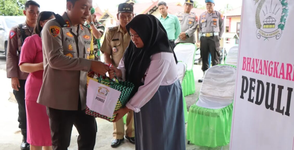 Kapolres Katingan Bagikan Bantuan Sosial Kepada Pelajar dan Warga Kurang Mampu