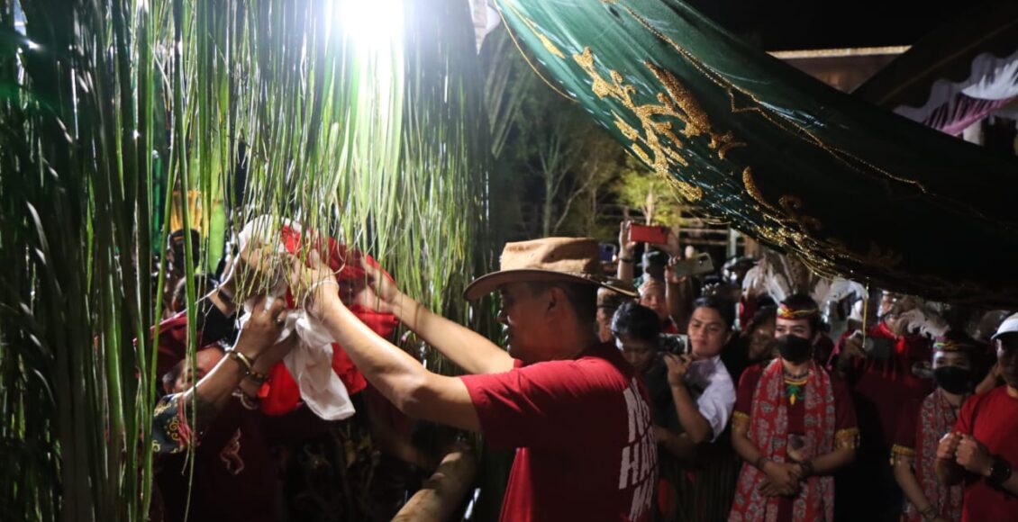 rombongant tim Bhayangkara Borneo Expedition disambut hangat pemilik, organisasi Fordayak, para tokoh adat dan masyarakat setempat dan lanjutkan dengan tradisi adat Dayak Kalteng berupa potong pantan sebagai ucapan selamat datang kepada tamu kehormatan. (Hum)