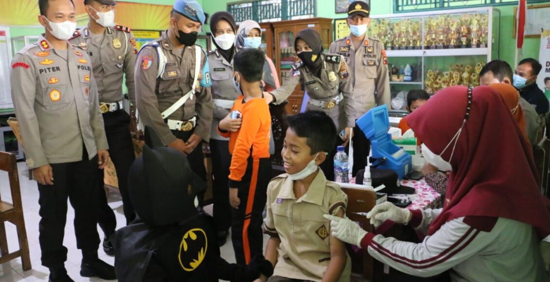 Sejak awal Januari, vaksinasi untuk anak SD usia 6-11 tahun secara estafet telah dilakukan Polres Kebumen.