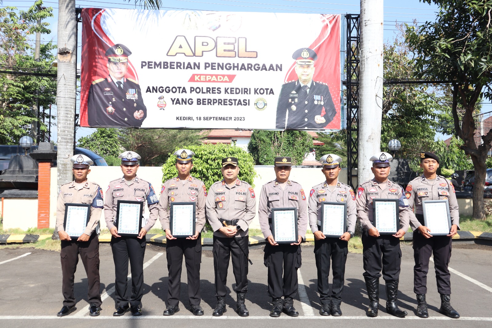 Saya berikan penghargaan dan apresiasi yang setinggi-tingginya kepda 7 (tujuh) personel Polres Kediri Kota yang telah berprestasi dan berdedikasi tinggi dalam pelaksanaan tugas,” tambahnya.