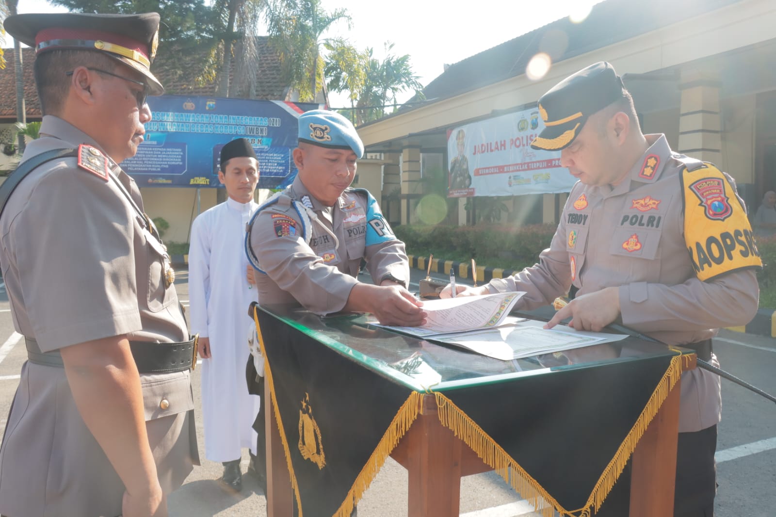 Untuk pejabat lama saya selaku Kapolres Kediri Kota menyampaikan ucapan terima kasih dan apresiasi yang sebesar besarnya atas capaian prestasi dan dedikasi saudara selama bertugas di Polres Kediri Kota, semoga saudara diberikan kesuksesan serta kelancaran oleh Allah SWT dalam mengemban amanah di tempat tugas yang baru, kata AKBP Teddy