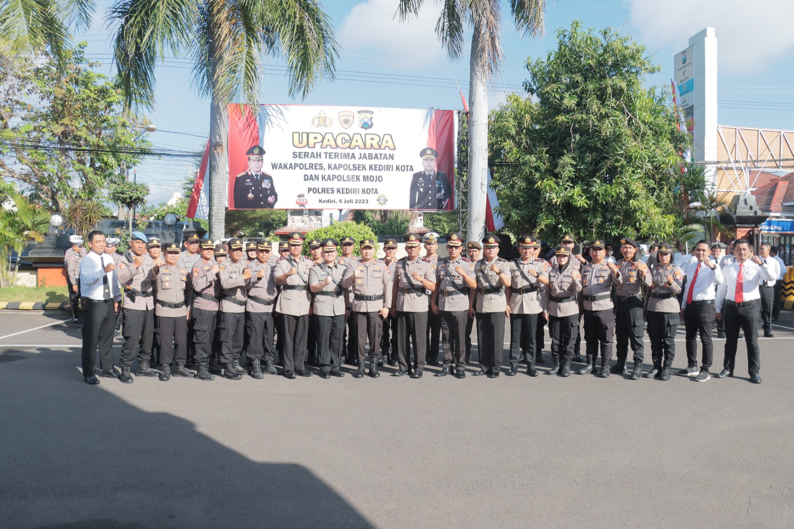 Upacara serah terima jabatan dilaksanakan dihalaman Mapolres Kediri Kota dipimpin langsung oleh Kapolres Kediri Kota AKBP Teddy Chandra, S.I.K., M.Si. selaku Inspektur upacara yang diikuti oleh seluruh anggota Polres Kediri Kota, para pejabat utama dan Kapolsek jajaran Polres Polres Kediri Kota