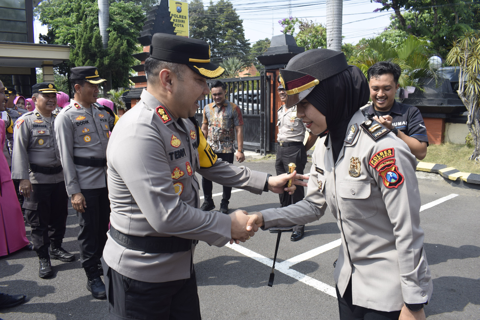 Kapolres Kediri Kota AKBP Teddy Chandra, S.I.K., M.Si. serta dihadiri Wakapolres Kompol Dodik Tri Hendro Siswoyo, S.H., S.I.K., M.I.K. PJU Polres Kediri Kota, Kapolsek, seluruh Personil Polres Kediri Kota, Pengurus Bhayangkari Cabang Kediri Kota, personil yang melaksanakan Korp Raport Kenaikan Pangkat beserta Bhayangkari.