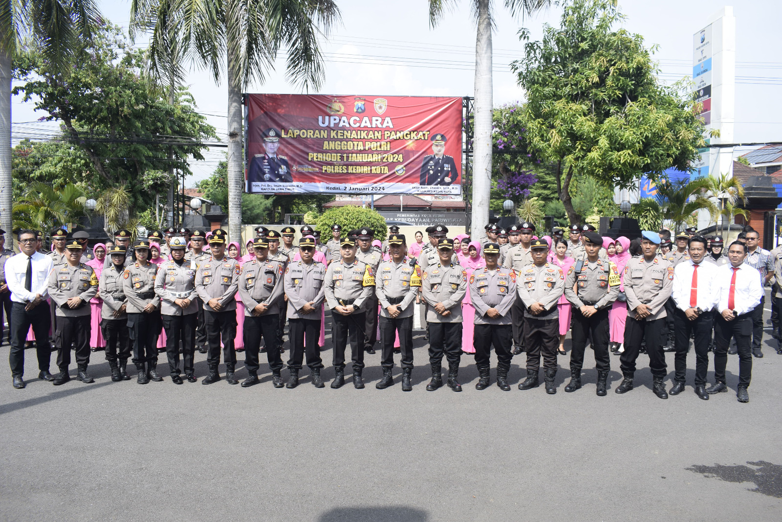Kapolres Kediri Kota Pimpin Upacara Korp Raport Kenaikan Pangkat 57 Anggota Periode 1 Januari 2024