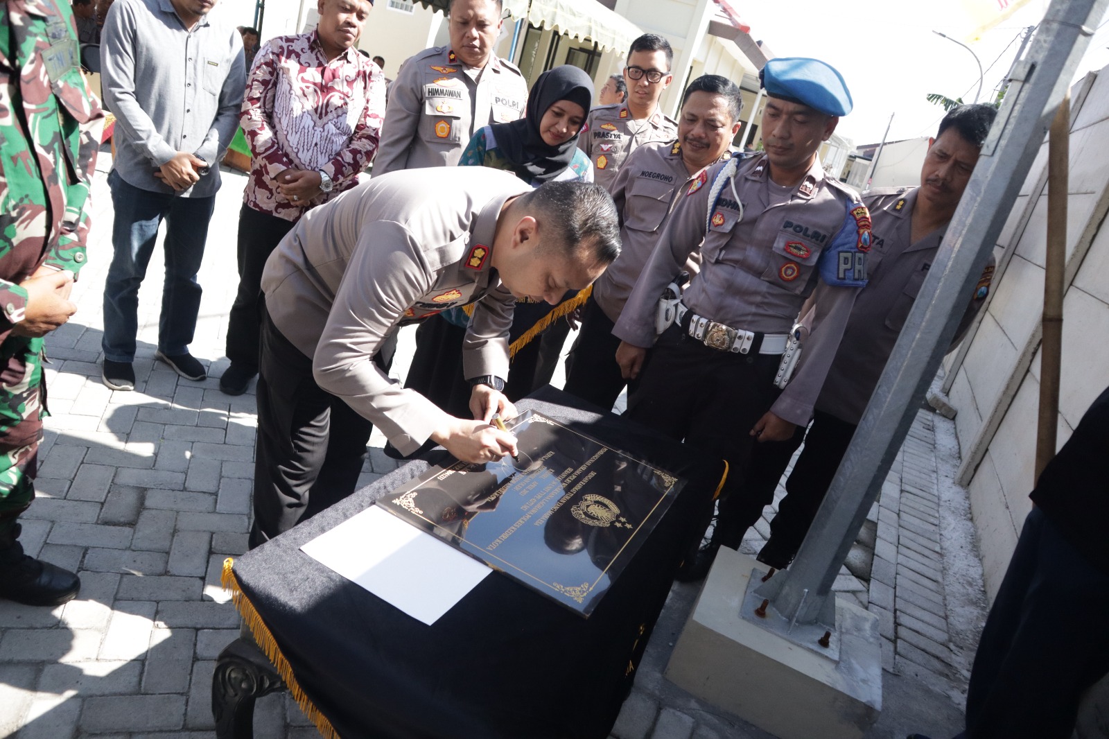 Dengan didampingi Waka Rumkit Bhayangkara Kediri dan PJU Polres Kediri Kota serta Forkopimcam Kec Kota Kediri menandatangani prasasti peresmian asrama Polri Wicaksana Laghawa.