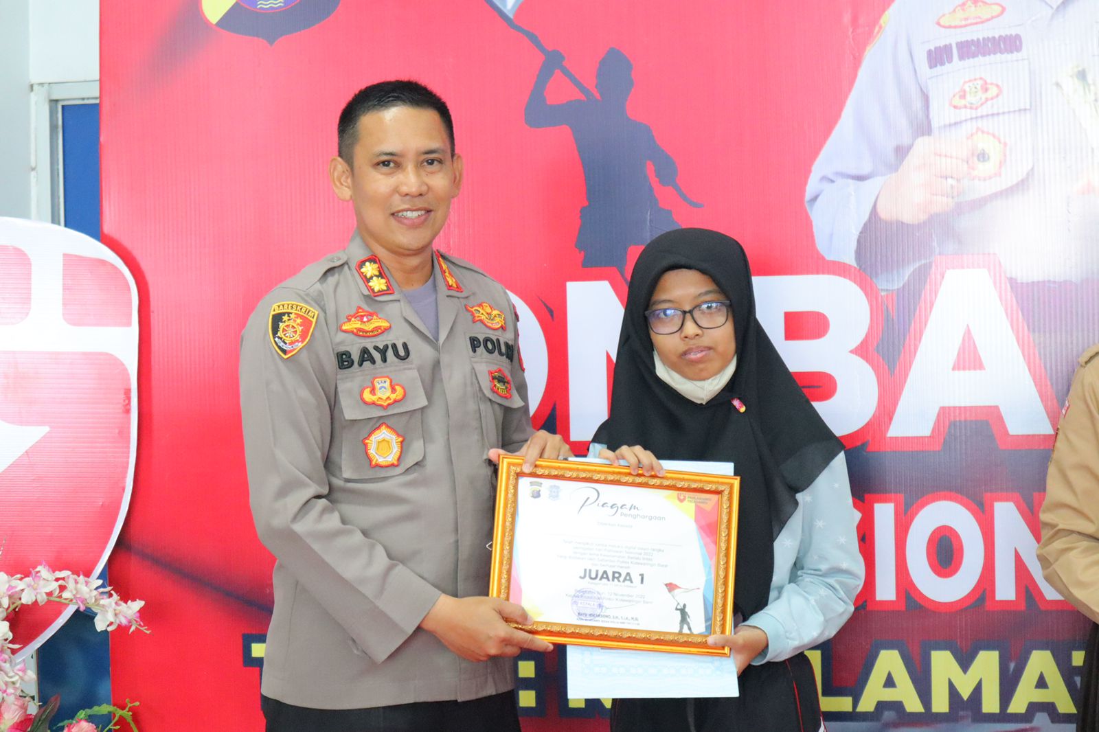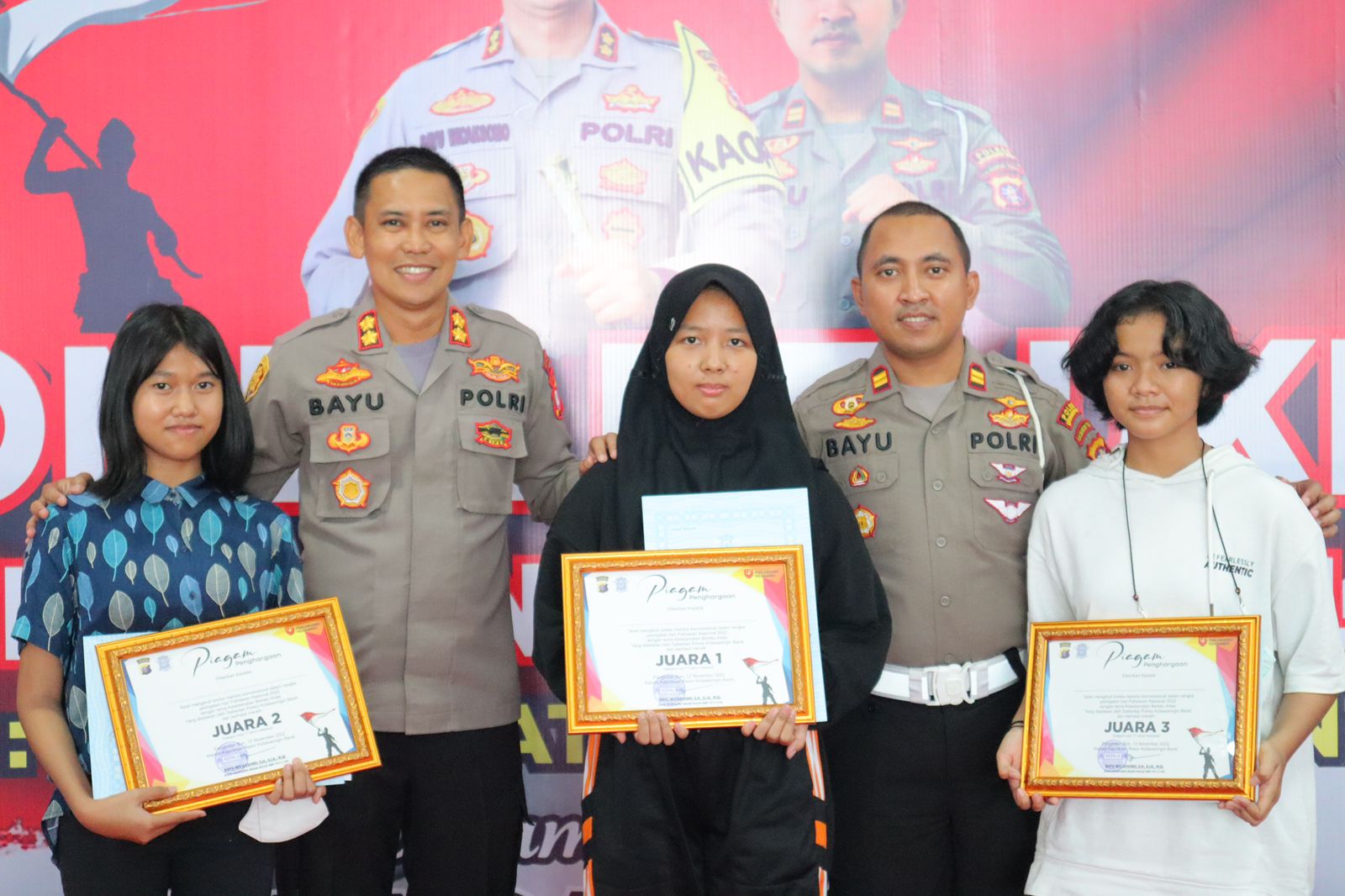 Selanjutnya, Kapolres menyerahkan hadiah dan foto bersama dengan pemenang lomba.(Red/Hum)